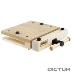 Pour tout menuisier occasionnel et travaux de montage. Convient très bien comme exercice pour les enfants. Fixation rapide du Smart Vise p. ex. avec un serre-joint sur n’importe quelle table ou plan de travail. L’établi est peu encombrant et se range donc facilement. Mâchoires de presse en érable. Épaisseur de base de la construction Multiplex Sandwich MDF/épicéa/75 mm, ouverture max. de la presse 110 mm. Avec quatre valets d’établi.