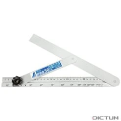 Cette fausse-équerre de charpentier fait à la fois office de fausse-équerre et d’indicateur. La butée possède une échelle métrique sur sa face interne et une échelle graduée sur sa face externe pour effectuer un réglage angulaire précis. La languette peut être inclinée à plus de 180°. Vous pouvez également utiliser le crayon pour le marquage de la surface en aluminium ; celui-ci s’enlève simplement avec le doigt.