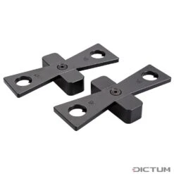 Gabarits d’angle avec quatre angles différents pour le taraudage de queues d’aronde. Les pointeurs intégrés permettent un positionnement précis sur les lignes centrales. Grâce à leur taille (120 x 60 mm) et à leur butée massive, les gabarits offrent une prise agréable. Convient aux épaisseurs de bois jusqu’à 45 mm, par exemple pour les assemblages de caissons ou de chevilles simples dans la fabrication de cadres et de montants. Rapport 1:5 et 1:6 pour le bois tendre, 1:7 et 1:8 pour le bois dur. En aluminium fraisé avec précision, anodisé noir.