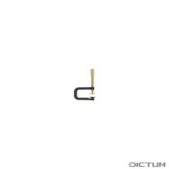 Les parties mobiles sont équipées de la plaque d’appui mobile classique et d’une broche de précision en laiton avec une poignée à molette. Le mors de serrage inférieur est ajustable en hauteur et augmente la polyvalence de l’outil. La plaque d’appui en laiton et le mors inférieur mobile peuvent en option être équipés avec des patins adhésifs en liège caoutchouc (disponibles comme accessoires, N° 735650-735652). Pour protéger les surfaces vernies, des capuchons spéciaux en silicone sont également disponibles comme accessoires. Étrier en acier noir anodisé.