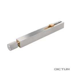La presse latérale est conçue de manière à pouvoir être entièrement intégrée dans l’établi. Seul le bouton moleté dépasse sur le côté et le valet d’établi amovible en laiton peut être inséré dans une fente par le haut. Grâce à cette construction simple chaque pièce de bois peut être facilement serrée contre les entraîneurs, tout en reposant à plat et complètement sur la face supérieure de l’établi, ce qui facilite l’accès à toute la surface de la pièce à usiner. Le valet d’établi fourni ayant une hauteur de butée de 6 mm peut être remplacé par d’autres hauteurs (disponibles séparément) en fonction des types de travaux.