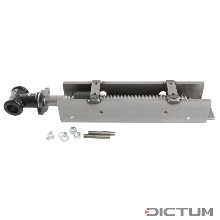Presse postérieure robuste et résistant à l’usure, proposée par presque tous les grands fabricants de banc de menuisier. Le guide en acier plein, sans jeu et pré-réglé, est facile à monter. Ouverture maximale 210 mm, broche extra-large Ø28 mm, ouverture pour pince-clé : 27 mm. Longueur du système : 350 mm. Fabriqué en Allemagne.