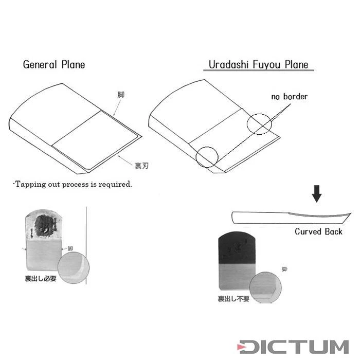 Le nom est une combinaison du mot Tsune, qui signifie » toujours «, et de Saburo, le nom de l’ancien maître » Saburo Uozumi «. L’atelier de maître Tsunesaburo, de 3eme génération, est très apprécié pour la qualité et la diversité de ses modèles de rabots. Les lames permettent d’obtenir une surface très fine et lisse. La particularité de ces fers de rabot est la rectification concave arrière, sans arêtes latérales. Ces fers de structure » Uradashi Fuyou « permettent d’obtenir un aiguisage très performant avec le moindre effort. Âme de coupe en Acier Papier Bleu. Le nom du forgeron est gravé sur chaque fer de rabot. L’angle d’inclinaison des fers est de 40°. Bloc en chêne blanc japonais.