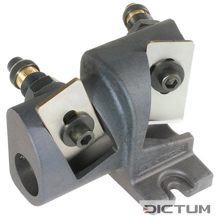 Outil de tournage génial pour produire rapidement des barres rondes d’une très grande précision à partir de bois équarris. Des bois quelconques sont sciés en carré avec une surépaisseur (+ 3 mm) et guidés dans l’outil de coupe entraînés par une perceuse. Équipé de deux couteaux (coupe amont et aval), réglage fin micrométrique et prise carrée. Idéal pour les jouets, le modélisme, les meubles, les réparations, etc. Bloc d’aluminium avec pied à visser, anodisé, deux lames A2 haute performance (coupe amont et aval), respectivement deux douilles de guidage et une prise carrée comme entraînement pour la perceuse. Jeu de base Ø 25 mm (1 pouce).