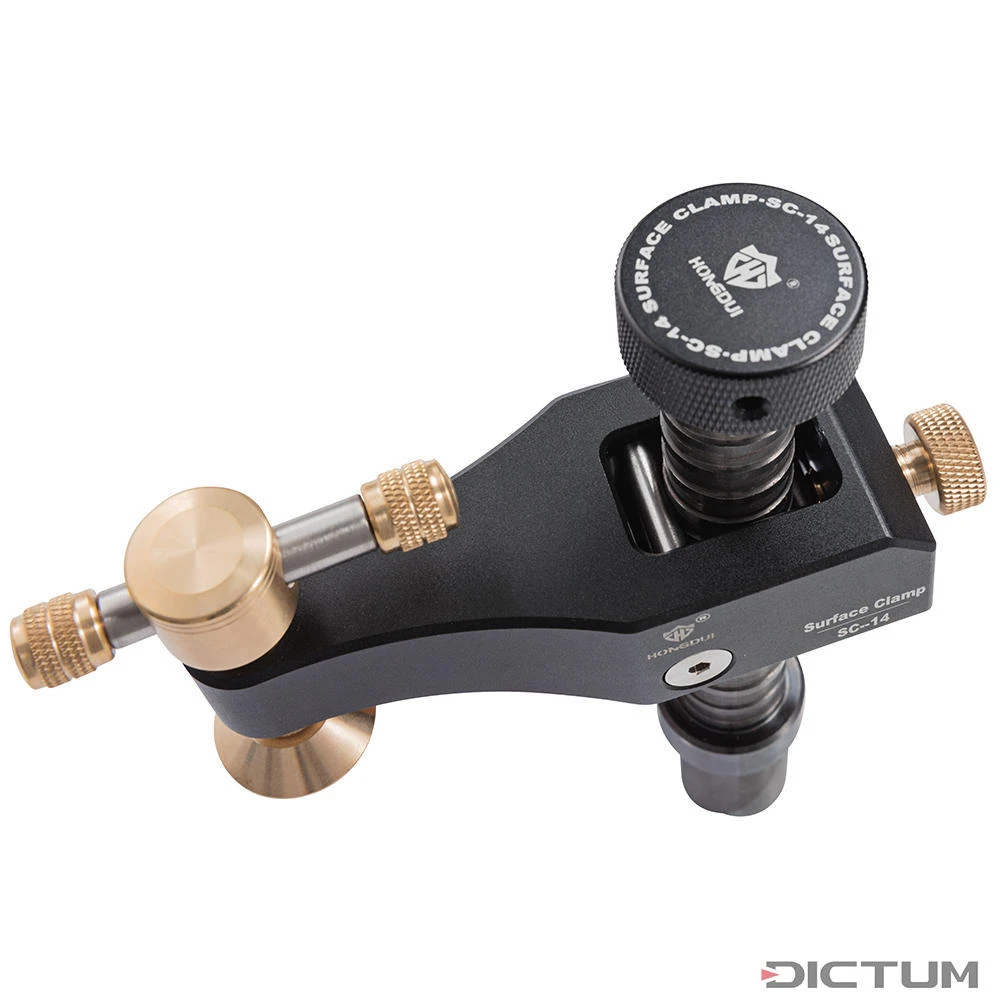 Équipé d’un boulon de serrage, le système de serrage peut être ancré dans des trous de 19-20 mm. Idéal pour les travaux sur les tables multifonctions ou les établis. Le boulon fendu à l’extrémité inférieure de la tige est inséré dans le trou et serré par le haut à l’aide d’une vis moletée, ce qui le coince dans le trou en toute sécurité. Le bras d’extension s’enclenche de manière automatique sur la tige rainurée, idéal pour un réglage rapide de la hauteur de serrage. Une vis moletée à l’arrière permet de fixer le bras d’extension dans sa position, ce qui est idéal pour les fabrications en série. La poignée sur la vis de pression en laiton assure une grande force de serrage avec peu d’effort.